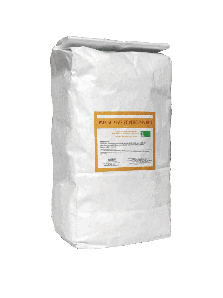 Subtil assemblage Bio de farines de blé, de maïs, de graines de tournesol et de curcuma. Ce mélange garantit gourmandise et voyage culinaire !